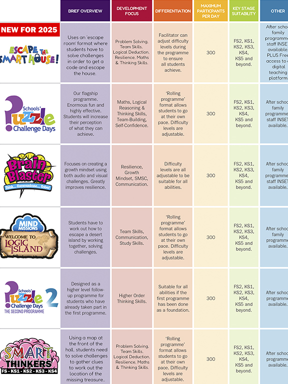 An exclusive programme for schools who have previously hosted a Puzzle Challenge Day programme